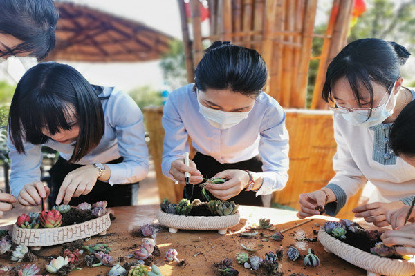 活动在天朗气清、鸟语花香的美好环境中拉开帷幕,河源公司工会主席凌雪芳、景区酒店总经理张迎春等领导参加了本次活动并致以节日的问候。客天下女职工们积极参与多肉DIY比拼游戏,分工合作,争评第一,在DIY的过程中陶冶身心、净化心灵,感受着种肉成画的乐趣。随后开展的厨艺大比拼更是让各位客天下女神们一展身手、各显神通,活动现场萦绕着让游子亲人贪恋的家的味道。